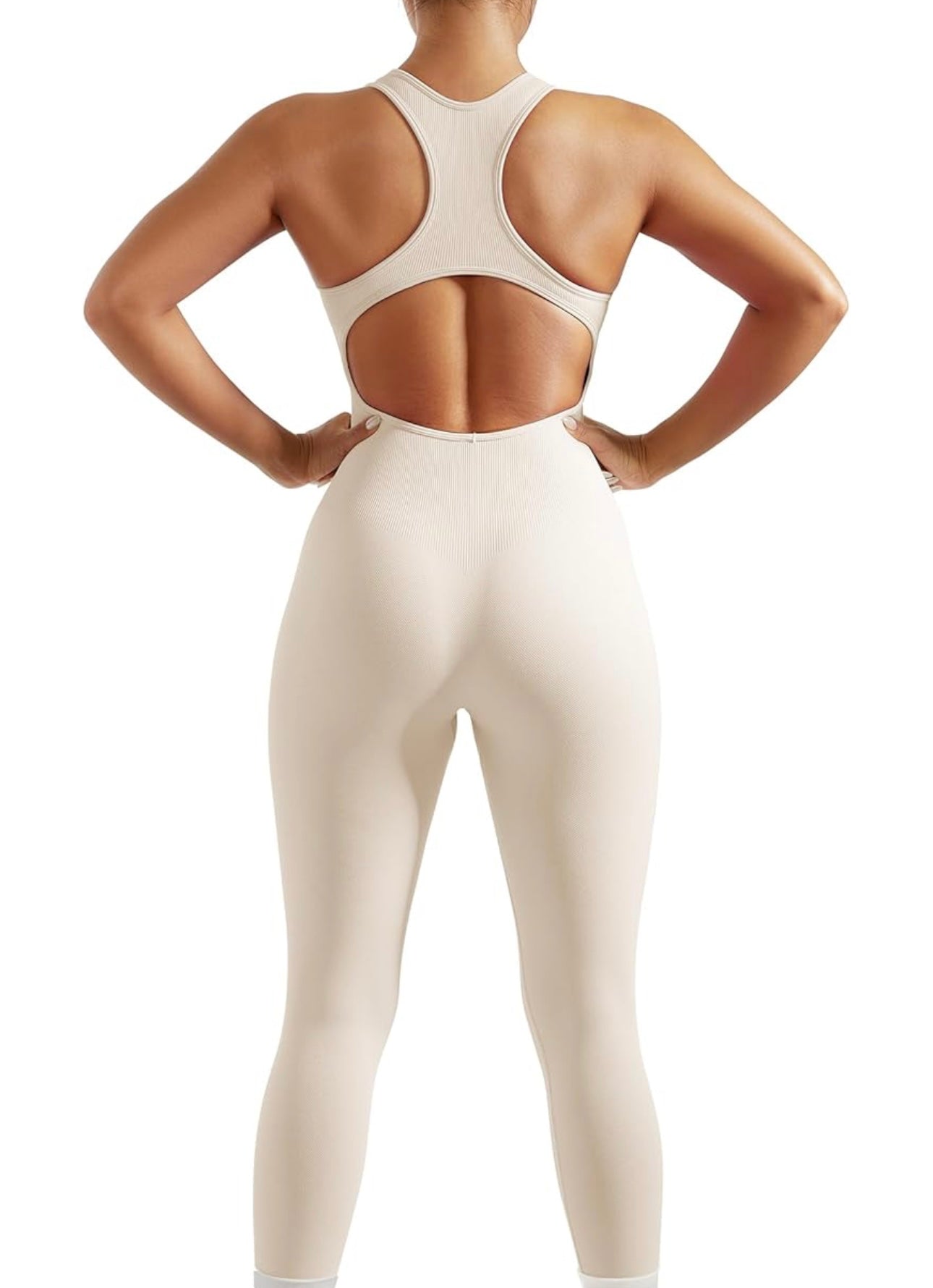Disponible en tonos neutros como ivory y chocolate, este enterizo es ideal para entrenamientos, yoga, o un outfit athleisure moderno.