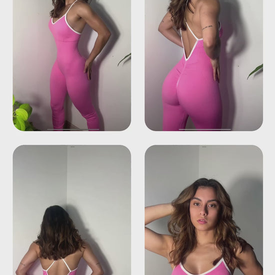 Un enterizo de alto impacto visual y rendimiento, diseñado para realzar tu figura y brindarte total libertad de movimiento. Su diseño sin mangas y escote con ribete blanco aporta un estilo moderno y femenino, mientras que la espalda con tirantes cruzados en forma de “X” deja al descubierto una silueta elegante y atrevida.