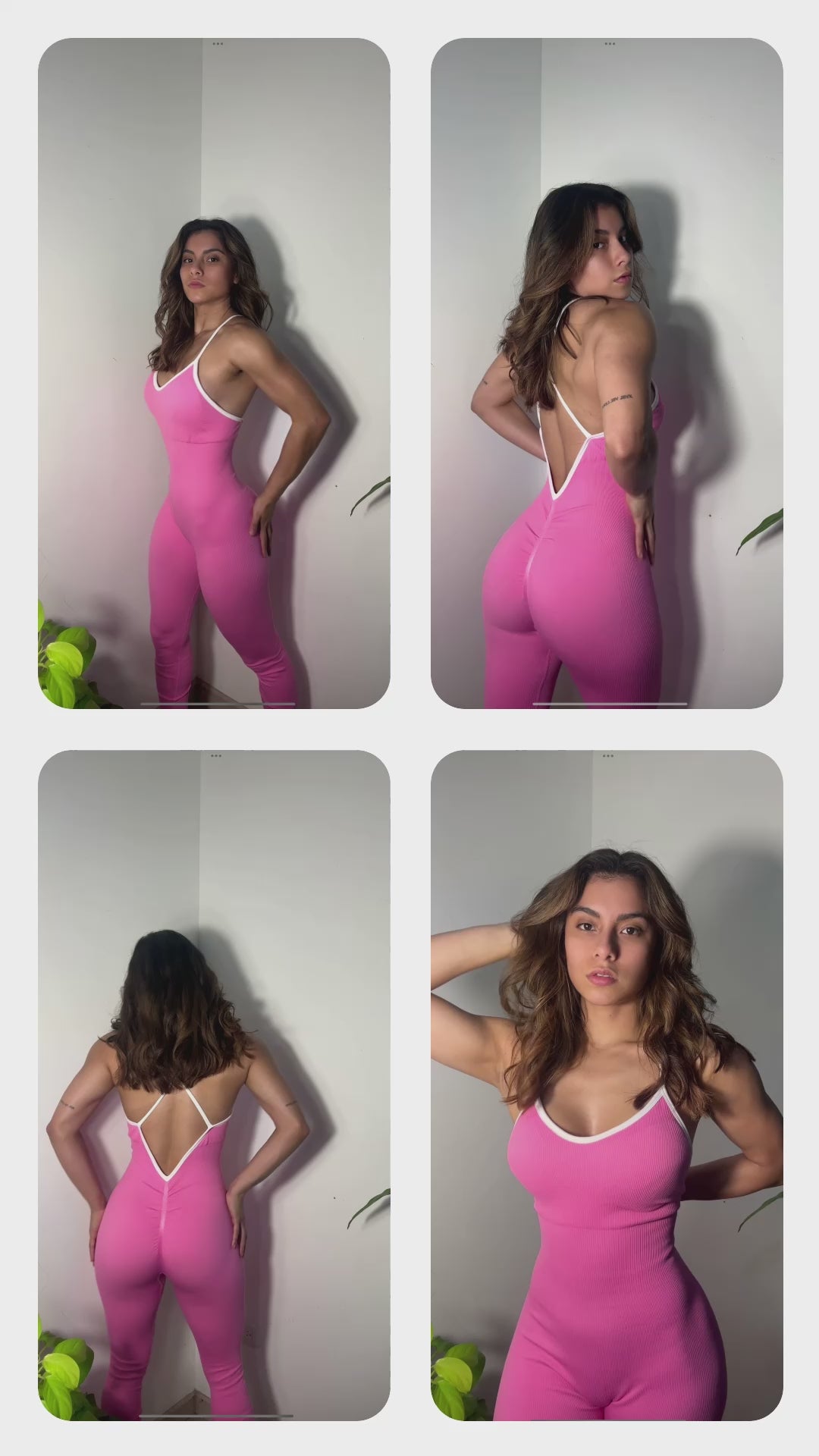 Confeccionado en tela acanalada de secado rápido, este enterizo absorbe el sudor eficazmente, manteniéndote fresca durante tus rutinas más exigentes. El tejido elástico se ajusta como una segunda piel, resaltando tus curvas y ofreciendo un efecto moldeador sin sacrificar comodidad.