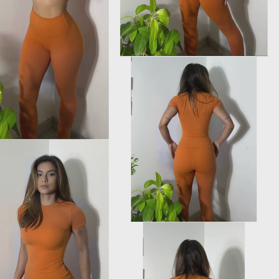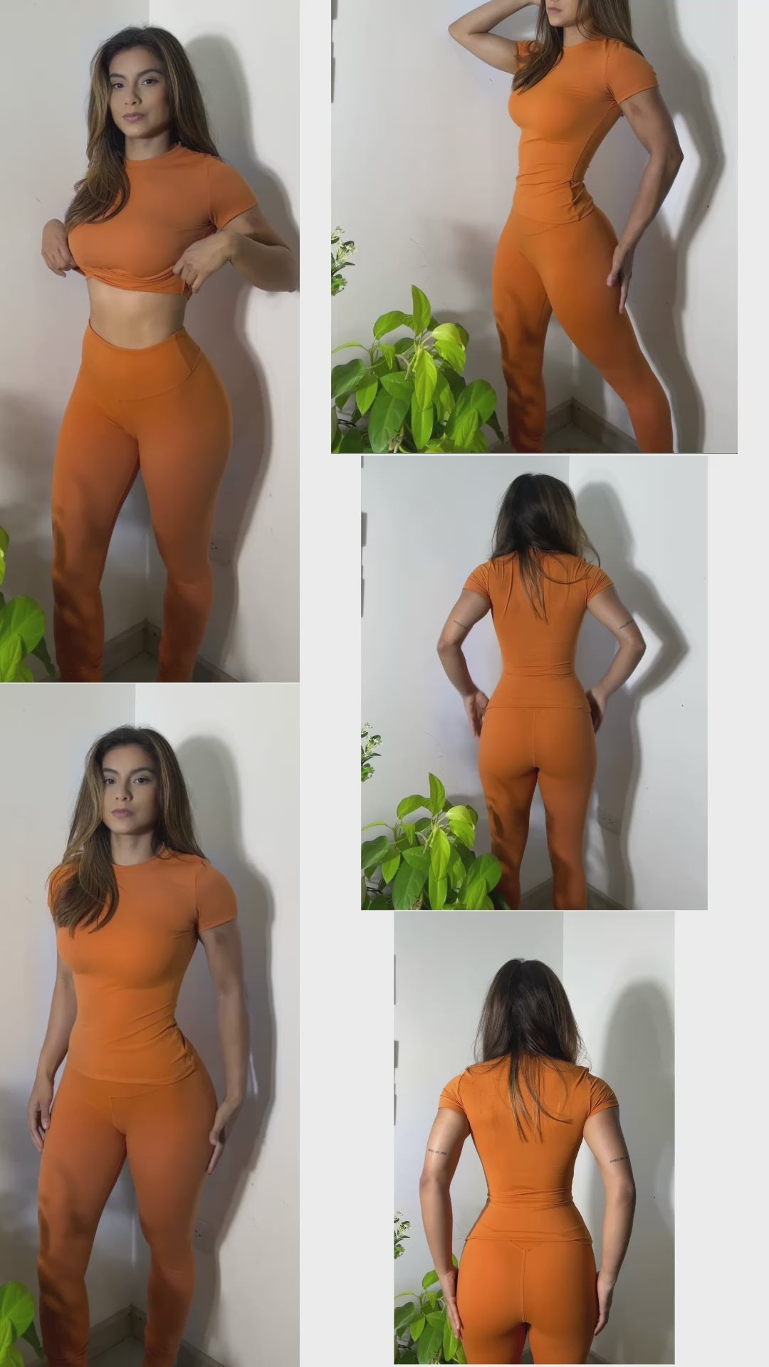 Su top ajustado y cintura definida realzan la silueta, mientras que el short ofrece control y soporte sin transparencias.